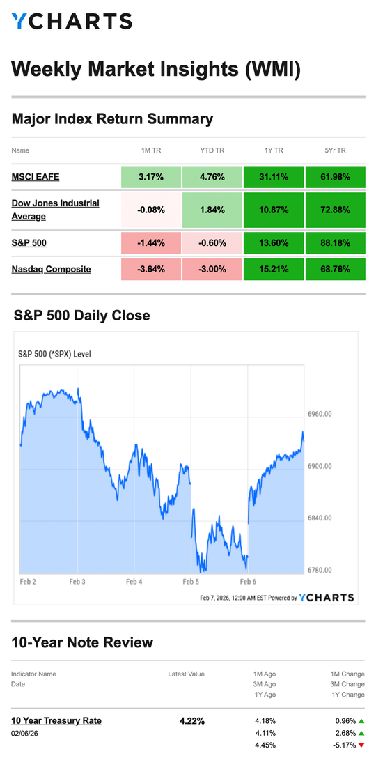 Source: YCharts.com, February 7, 2026. Weekly performance is measured from Monday, February 2, to Friday, February 6.