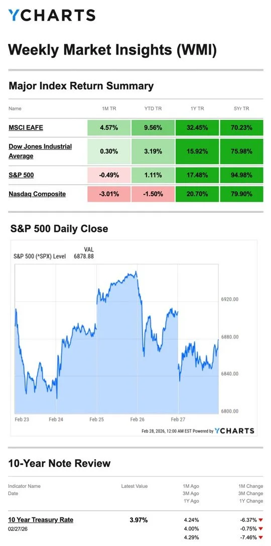 YCharts.com, February 28, 2026. Weekly performance is measured from Monday, February 23, to Friday, February 27.